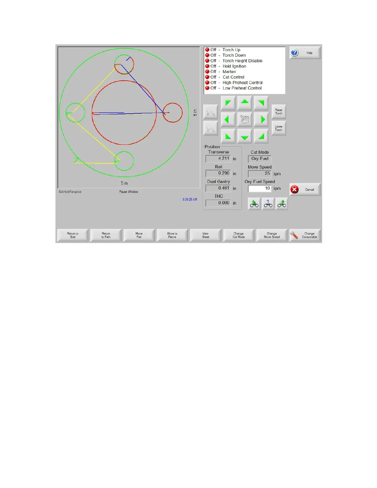 use the Manual arrow keys to jog the cutting device off path to a suitable pierce point. Pressing