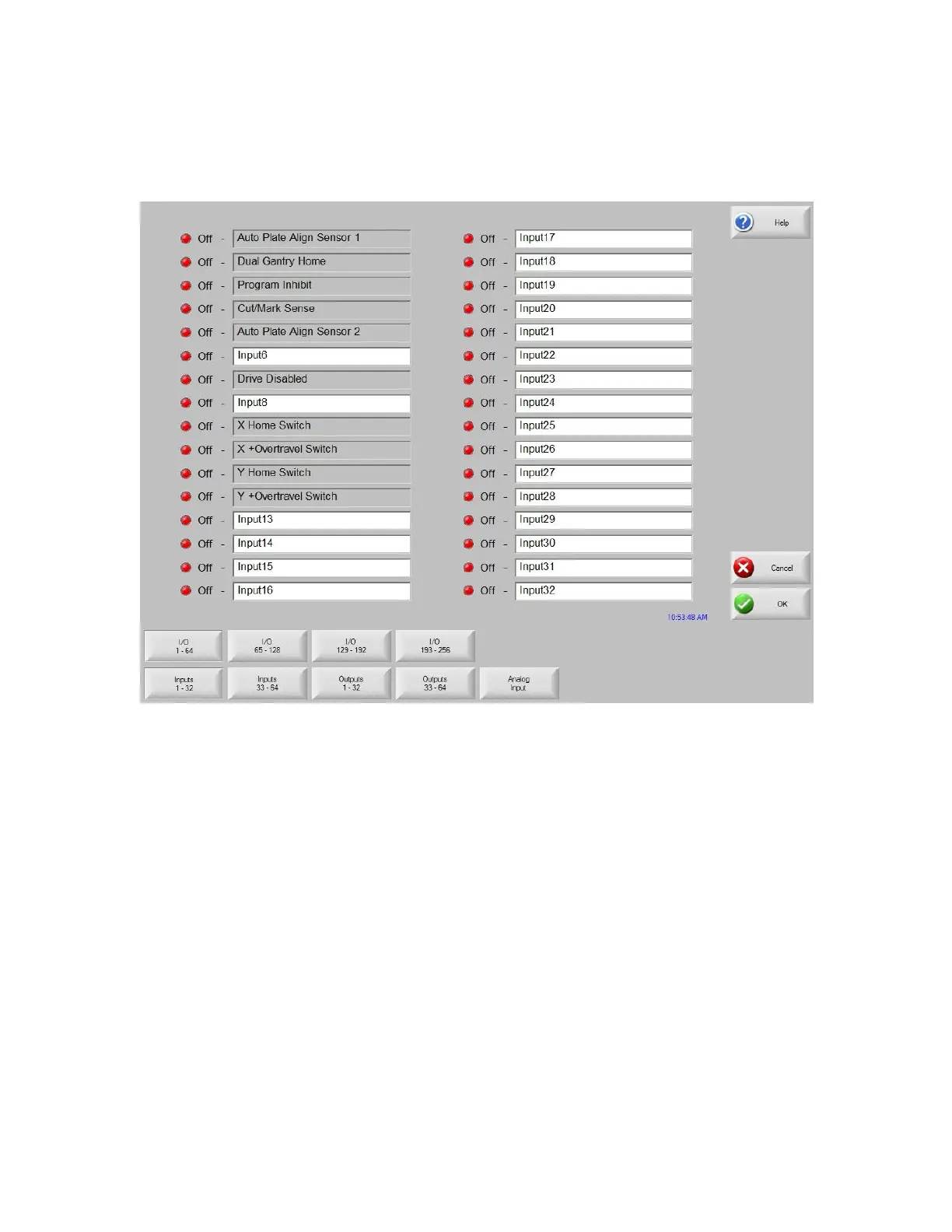 For controls equpped with more than 64 I/O a series of selection softkeys are available to access the