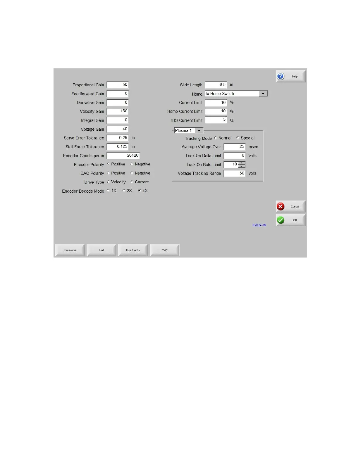 value is set to .1 inches, the THC Axis will continue to move the axis until .1 inches of following error