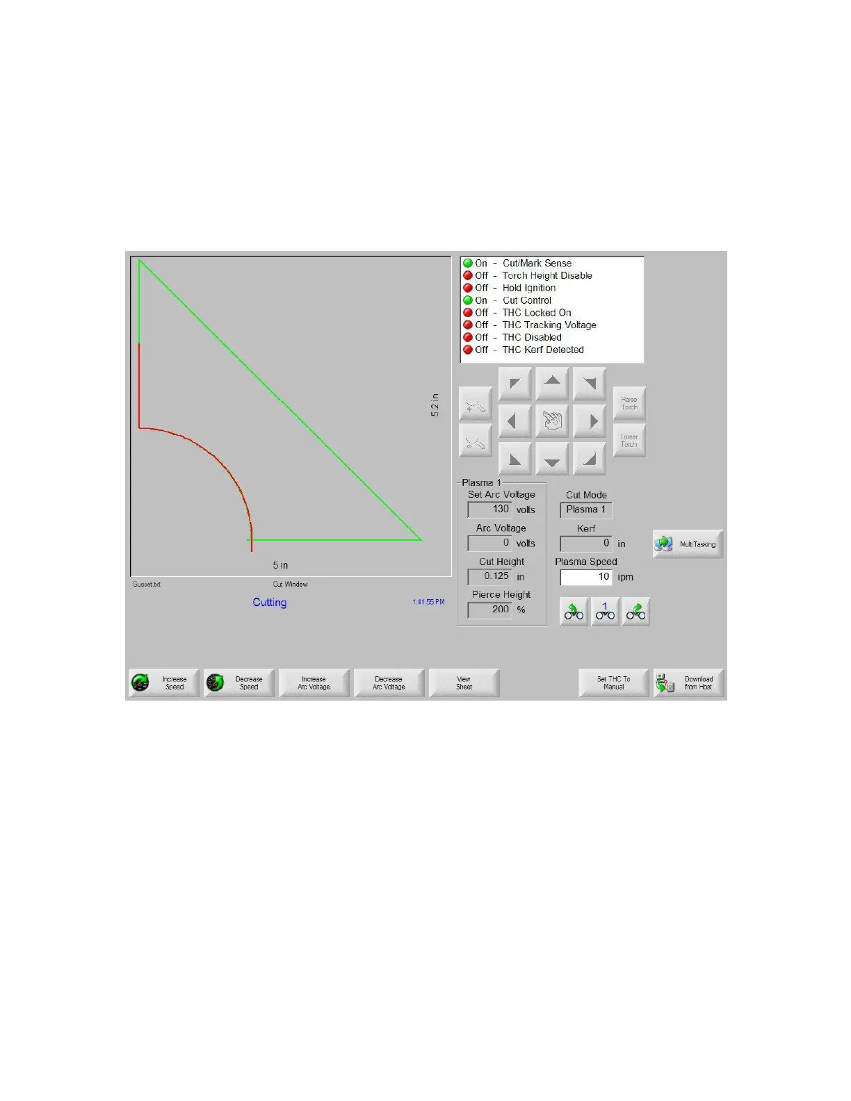 keys will become available to manually increase and decrease the Arc Voltage for the cut.
