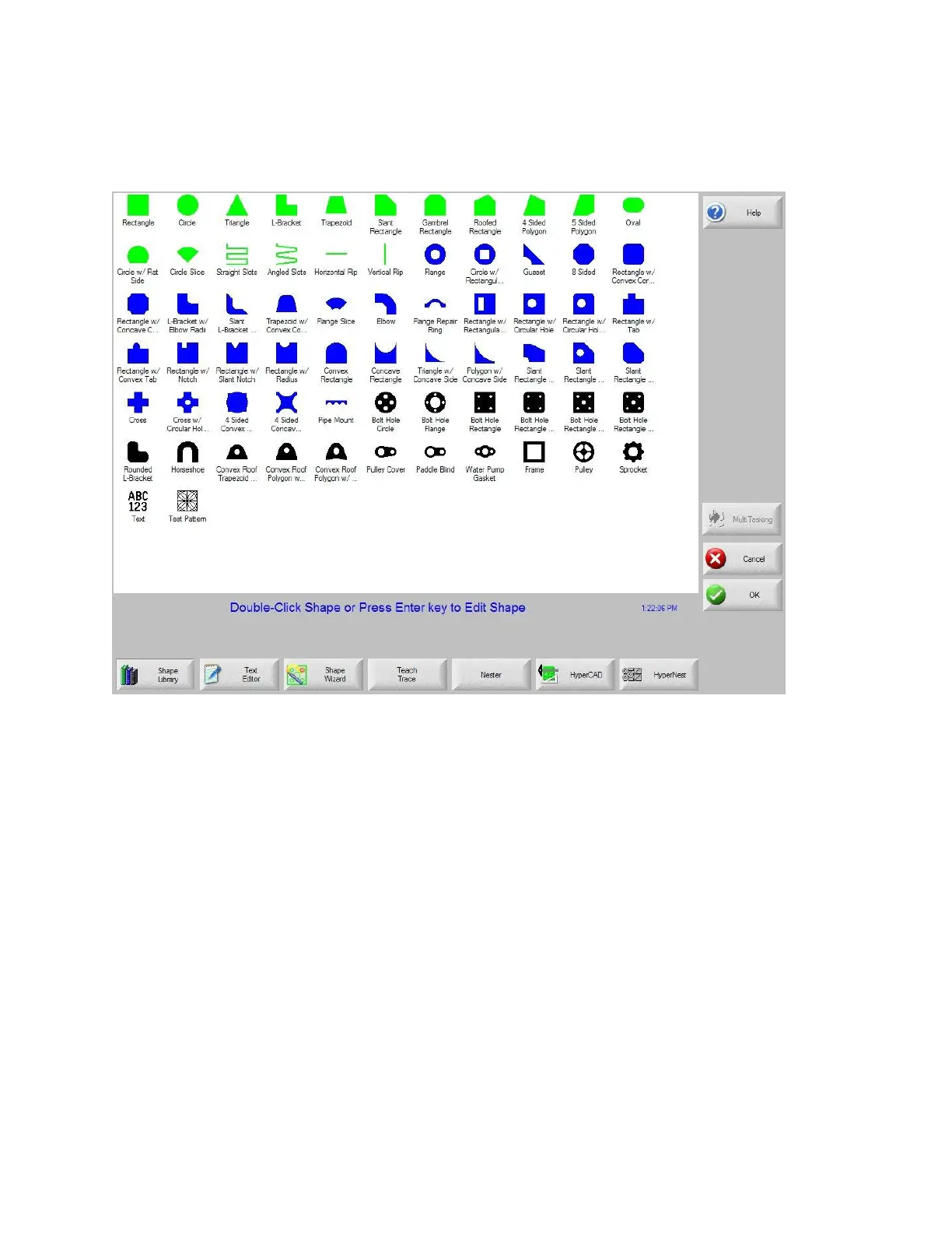 The Shape Manager screen is used to retrieve a part from the Shape Library and edit part files.