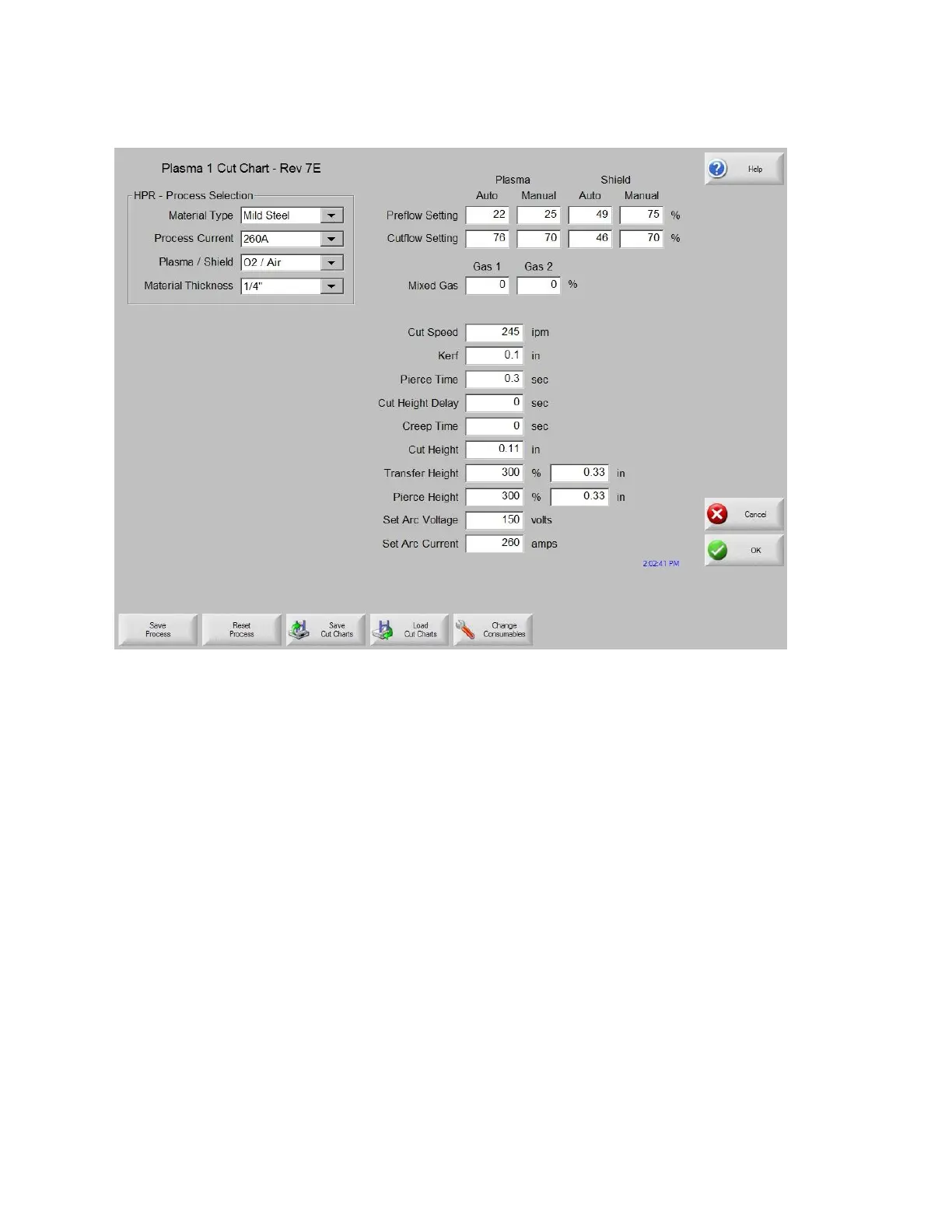 The Cut Chart Database (cut process parameters) transmitted to the power supply is based on the