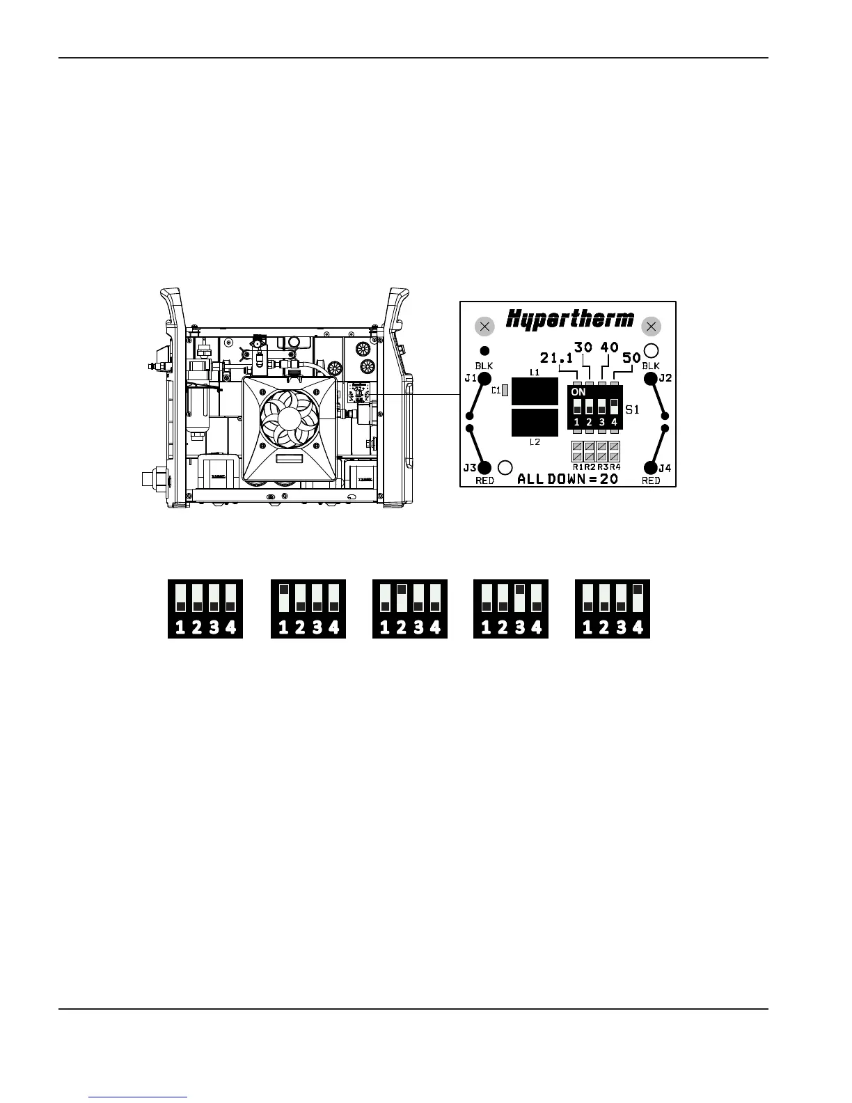 Note: The figure below shows the default setting (50:1) with the number 4 switch up.