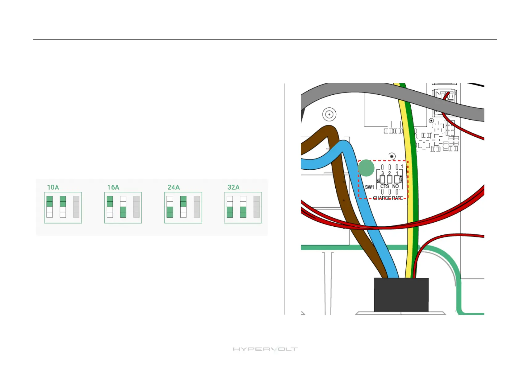 It is possible to limit the maximum current the Hypervolt Charger will operate at by permanently derating the unit using the internal dip