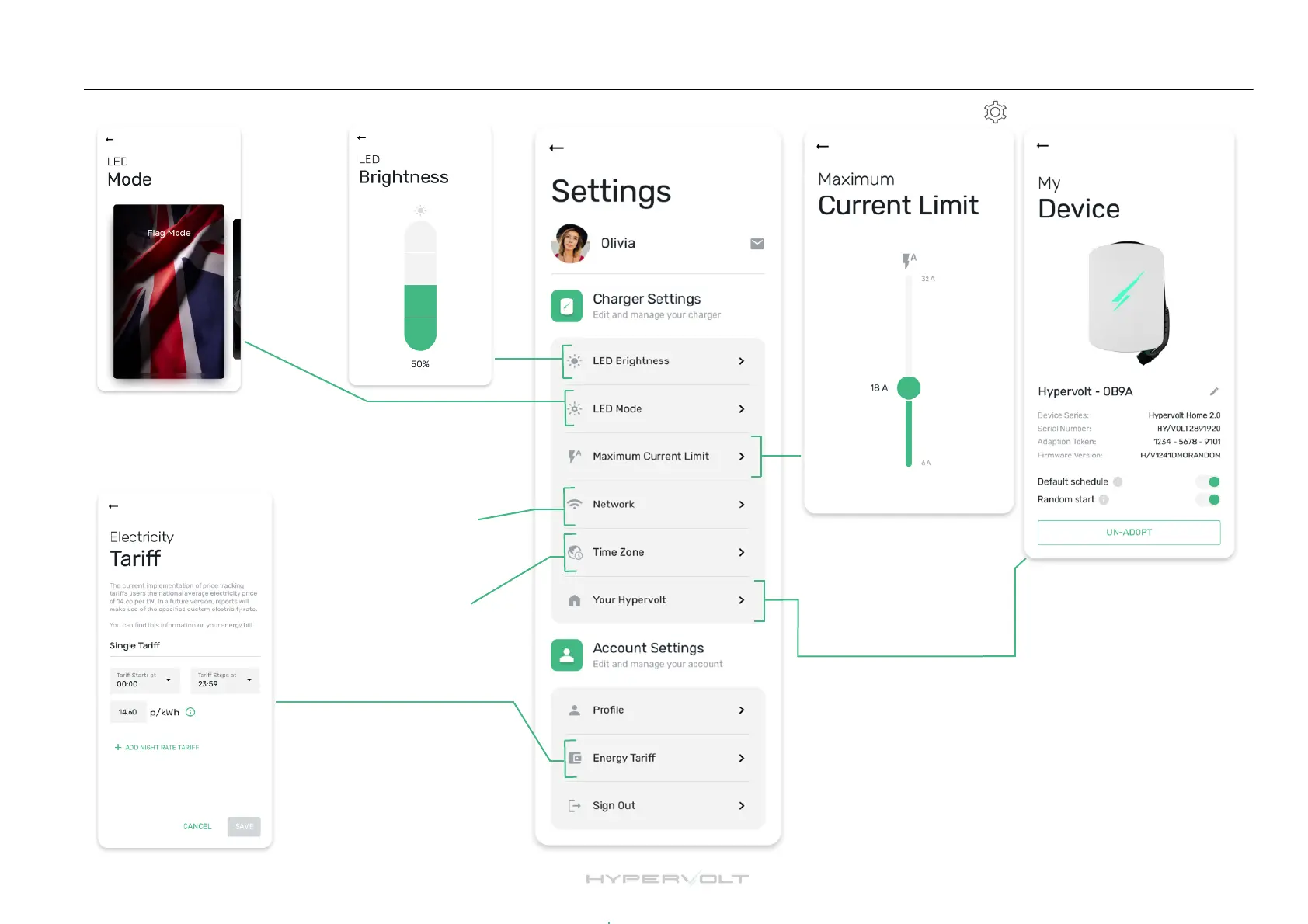 To configure your charger and access key information you can do so under ‘settings’ in the app. Tap on the. in the top right corner.