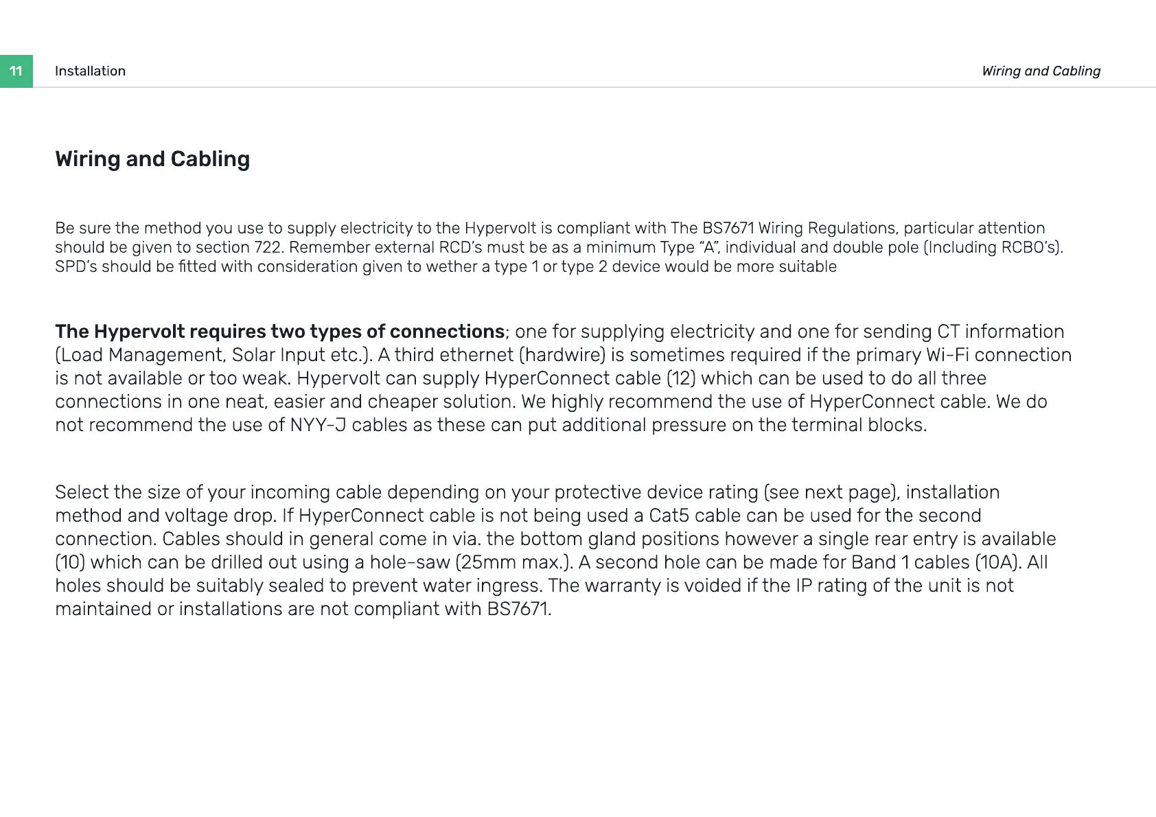 Be sure the method you use to supply electricity to the Hypervolt is compliant with The BS7671 Wiring Regulations, particular attention