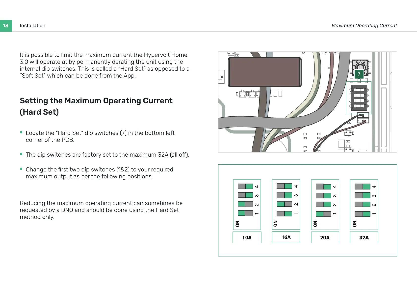 Locate the “Hard Set” dip switches (7) in the bottom left