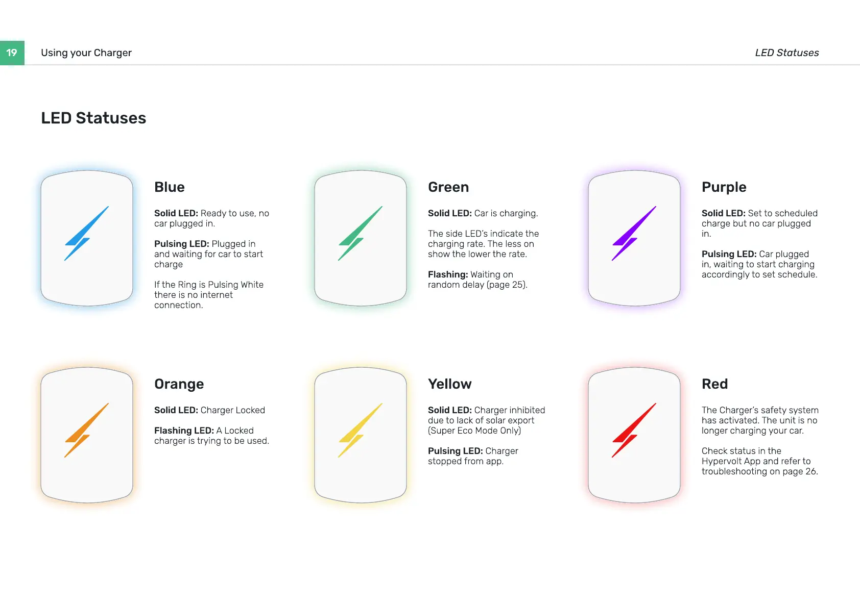 19 Using your Charger LED Statuses