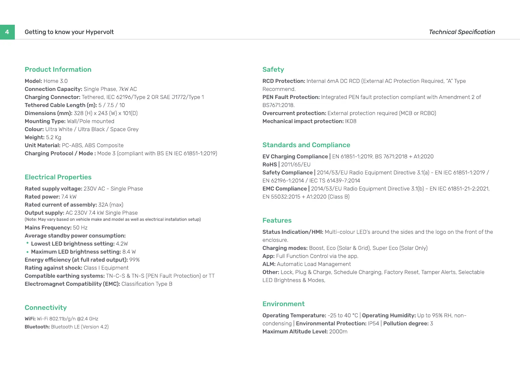 Charging Protocol / Mode : Mode 3 (compliant with BS EN IEC 61851-1:2019)