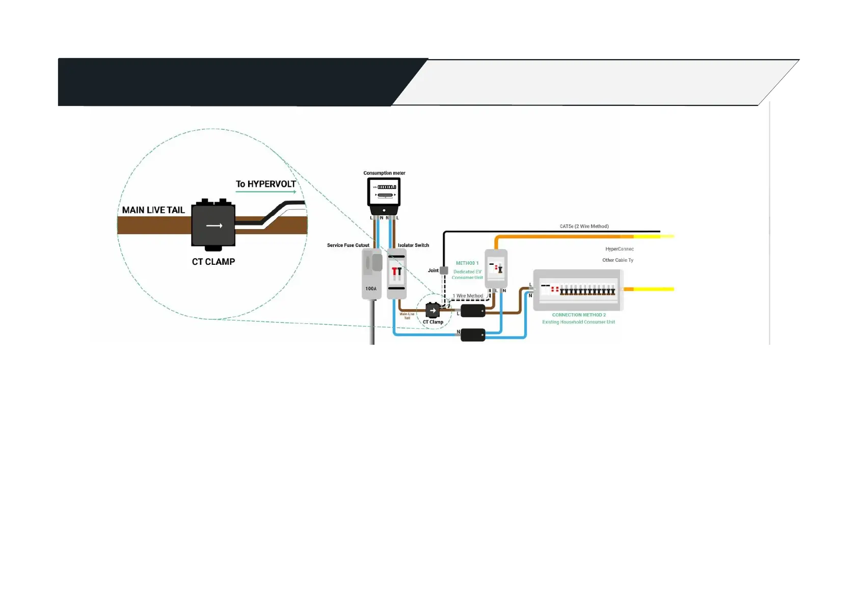 A separate consumer unit spurred into the existing meter tails is installed just for the use of the Hypervolt unit. HyperConnect (1 Wire Method Orange cable only)