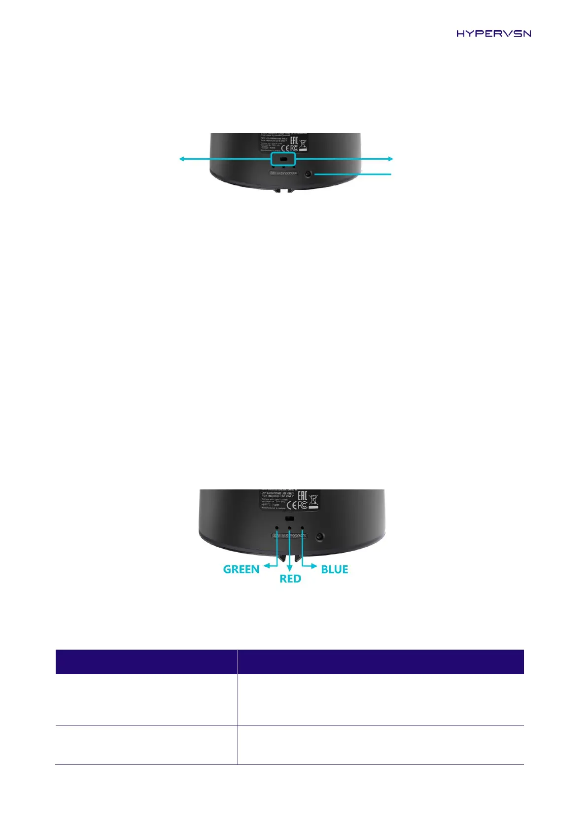 The Device status can be determined based on the activity of the three indicators on the base of the stator.