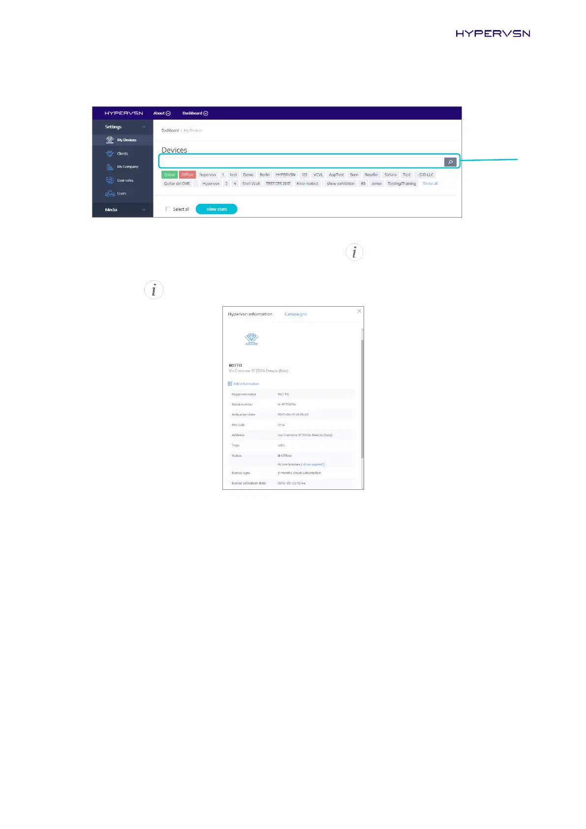 You can also enter the Device serial number in the search bar to see the required Device in this list.