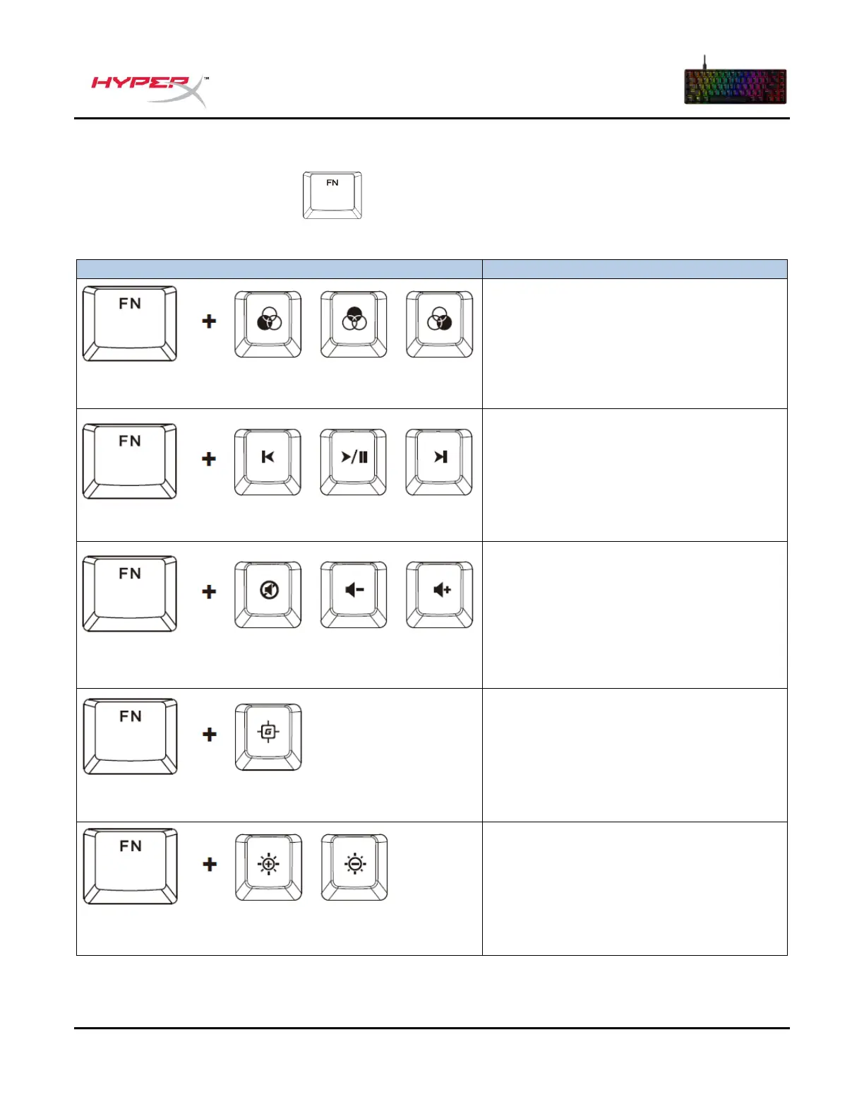 Naciśnij jednocześnie klawisz i klawisz funkcyjny, aby aktywować jego dodatkową
