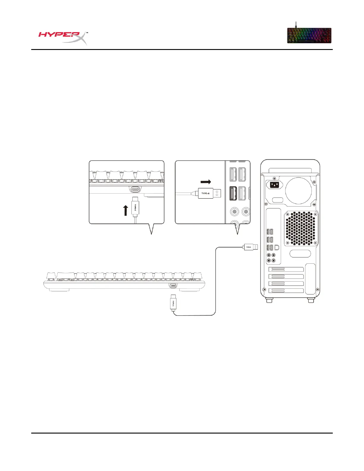 1. USB-C 커넥터를 키보드에 연결합니다.