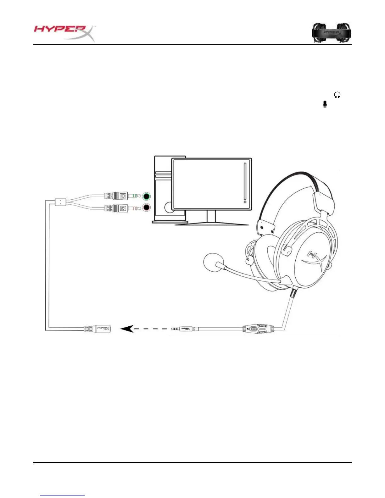 헤드셋의 3.5mm 플러그를 PC 연장 케이블의 암형 잭에 연결하십시오. PC 연장 케이블에는