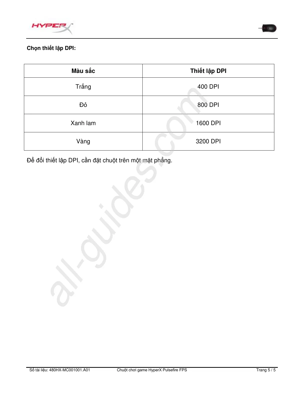 Đ đi thiết lp DPI, cn đt chut trên mt mt phng.