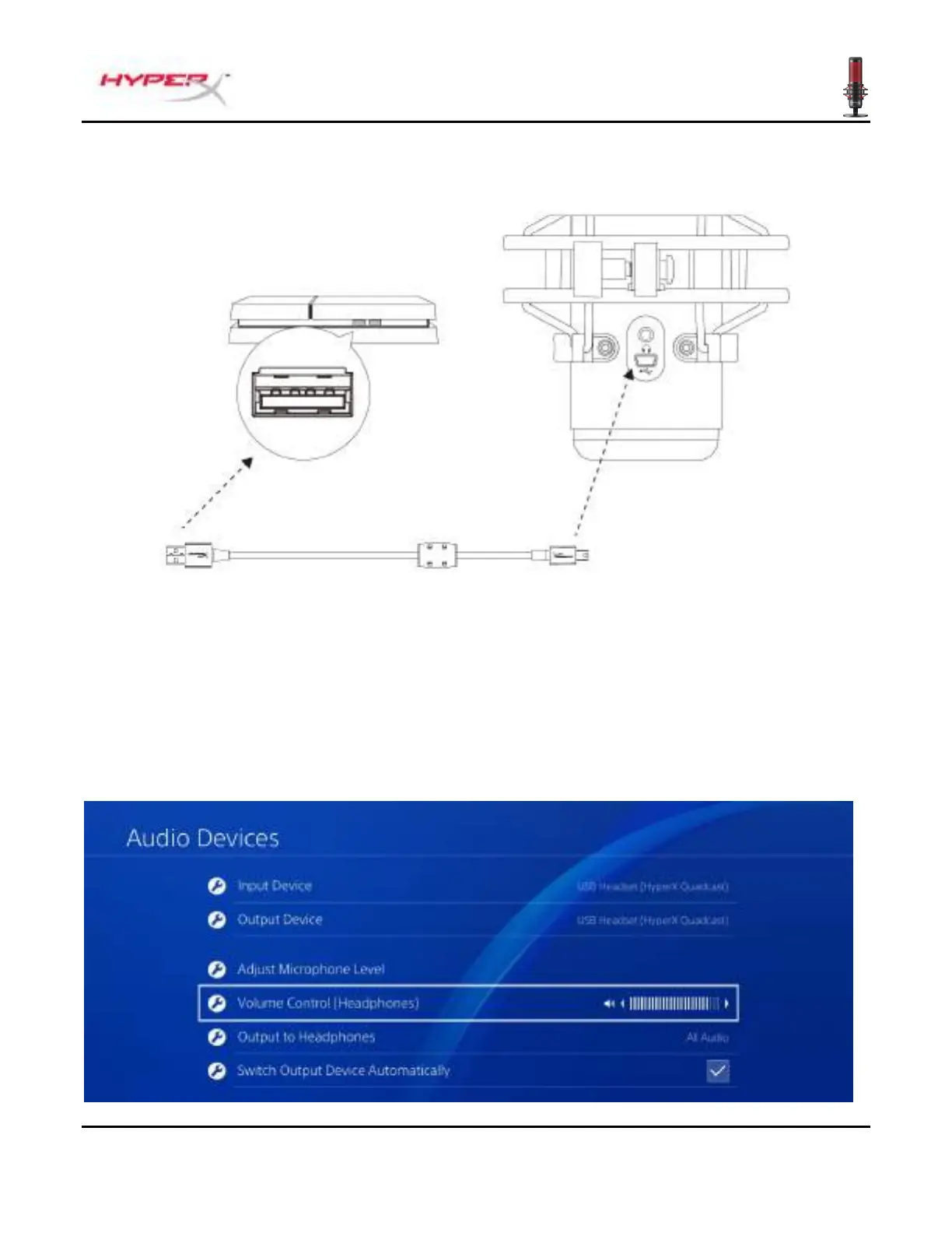 透過隨附的 USB 線將麥克風連接到 PS4 上的 USB 連接埠。