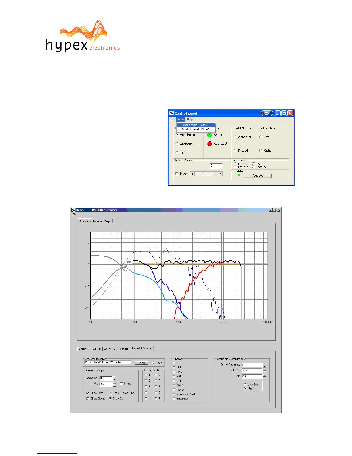 The presets can be filled in the “Filter design” section.