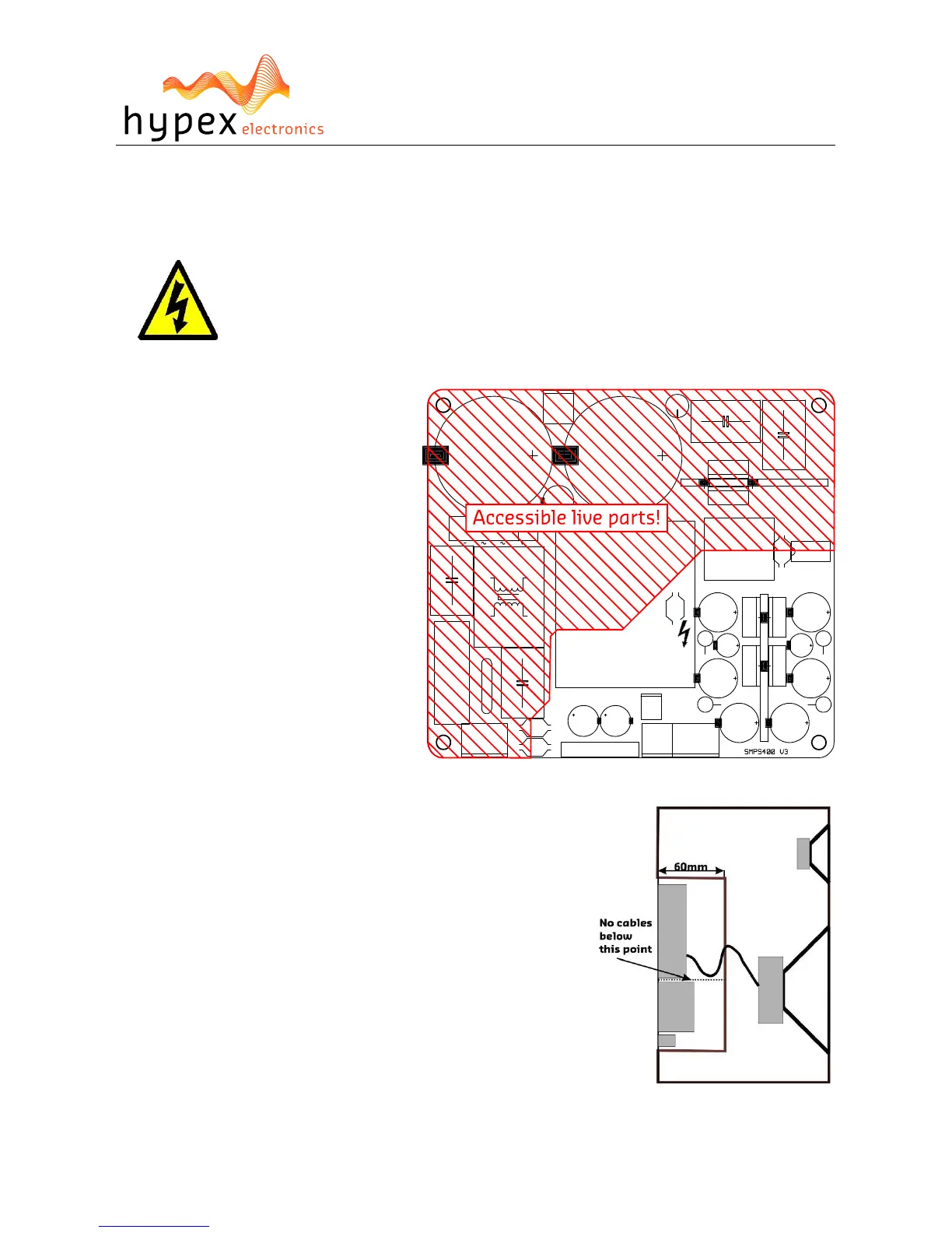The SMPS400 operates at mains voltage and carries hazardous voltages at