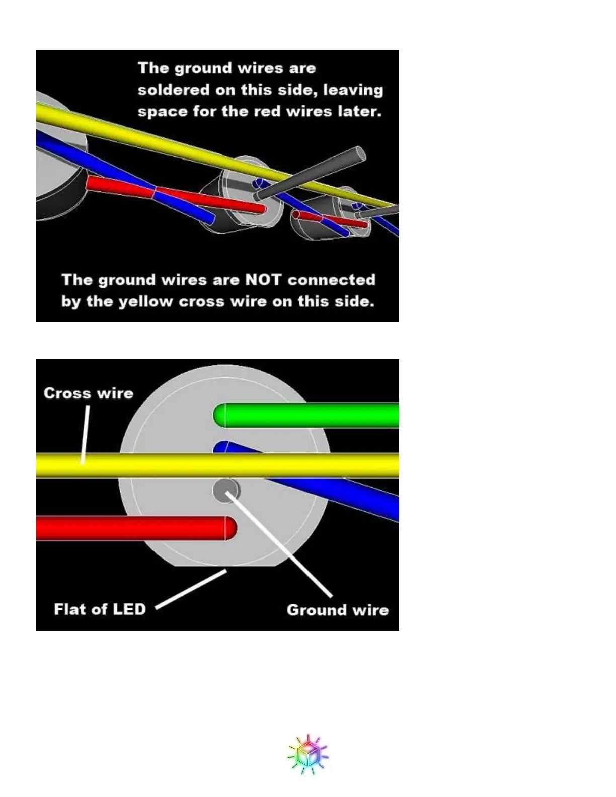 equal amounts hanging off either ends. You want to solder fairly close to the LED, at the same distance all the