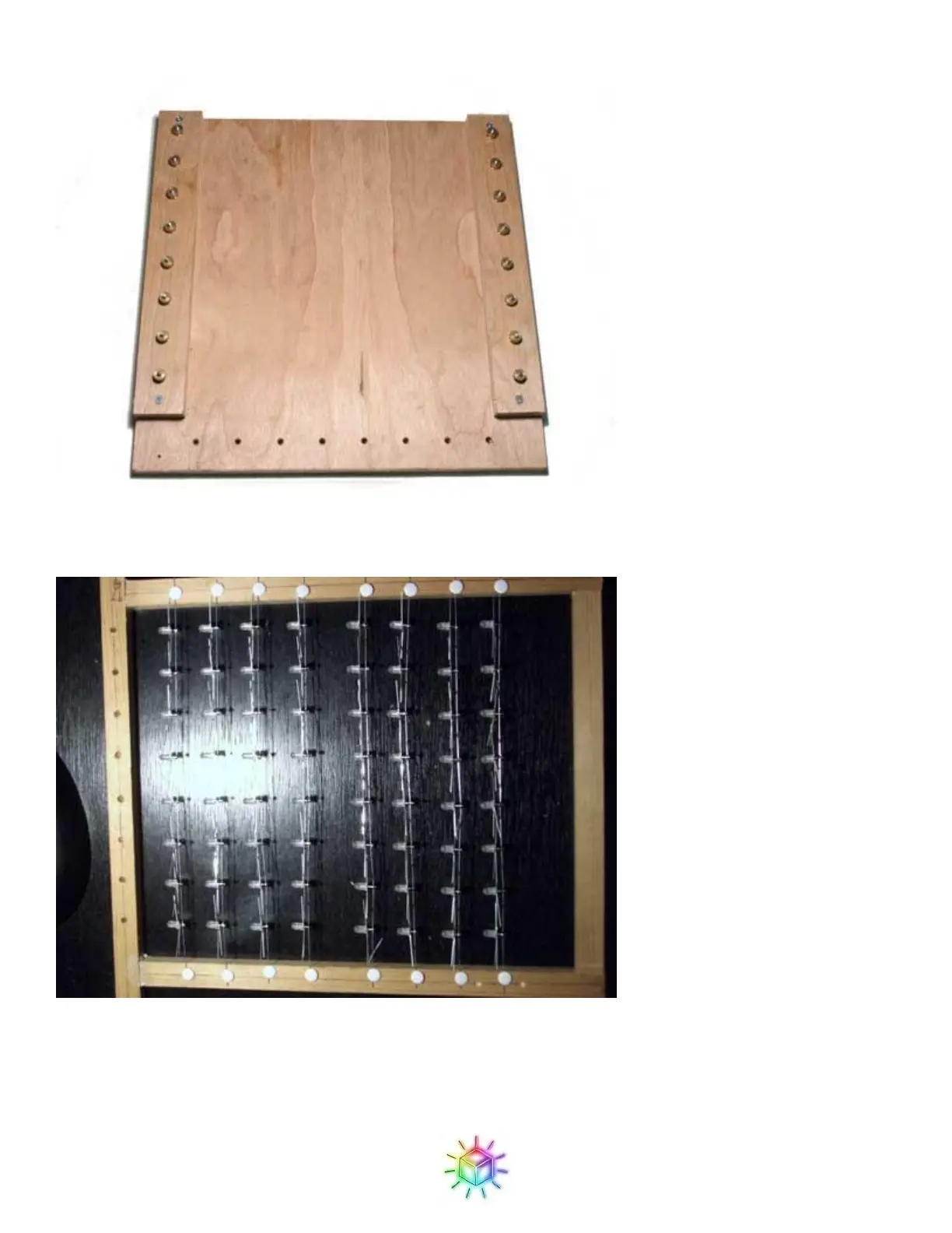 You will attach the strips to the grid as follows. Place a strip across the top, LEDs pointing straight to the top of