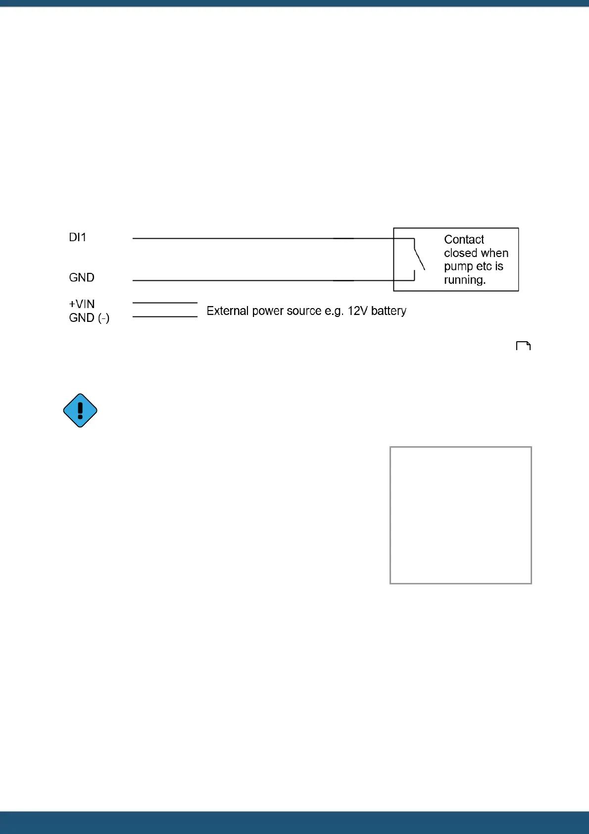 The diagram below shows the typical connection diagram for such an installation. It assumes the use of DI1 as the device