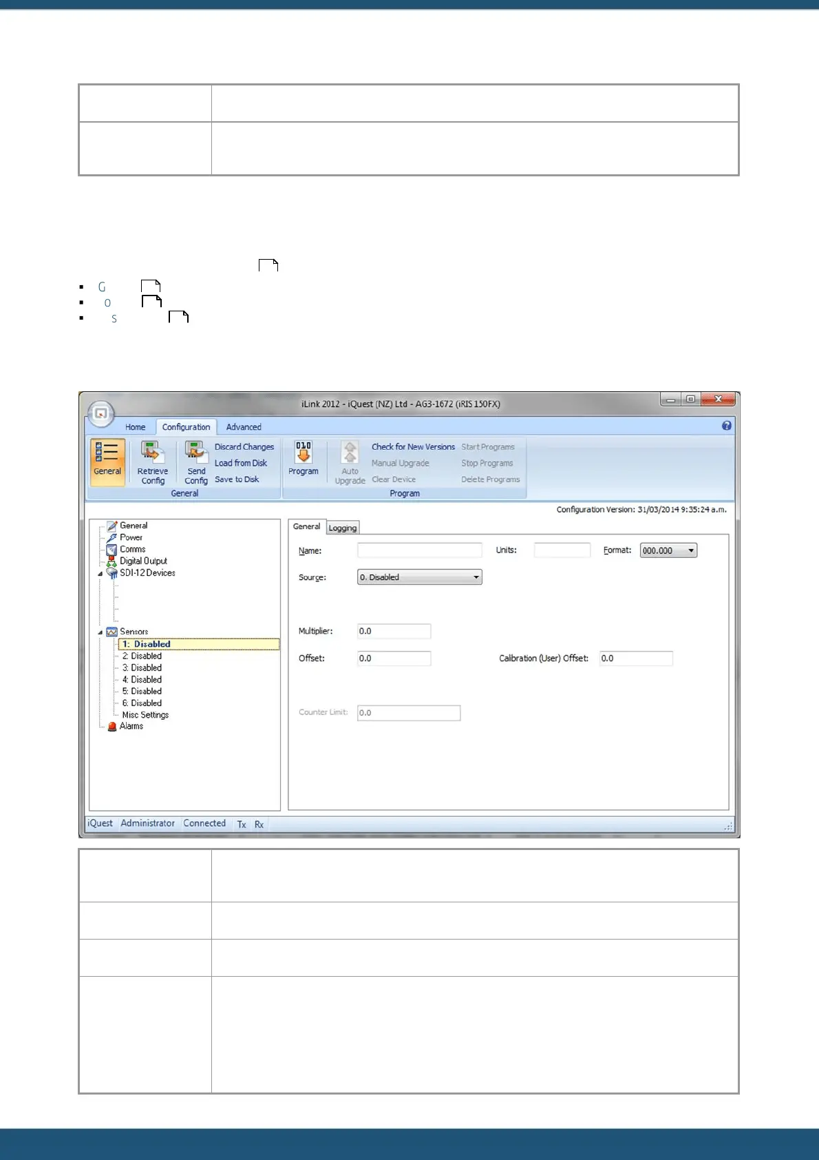 The sensor configuration menu is used to configure each of the six main virtual sensors. Refer to the datalogging features