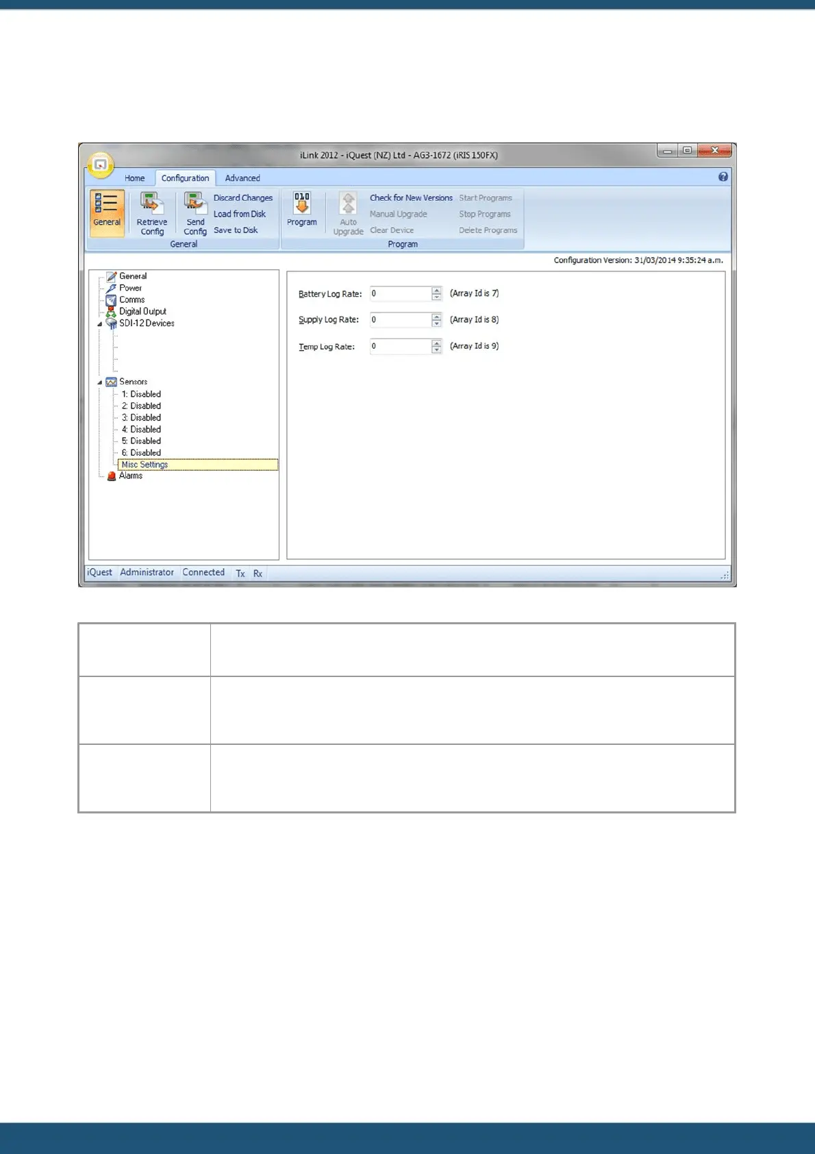 setting a log rate (in minutes) via this option. Supply voltage data logged this way has an array