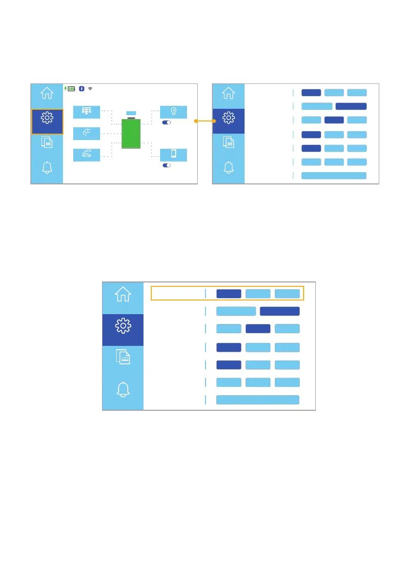 Selecting the Settings button on the Homepage UI touchscreen shows the