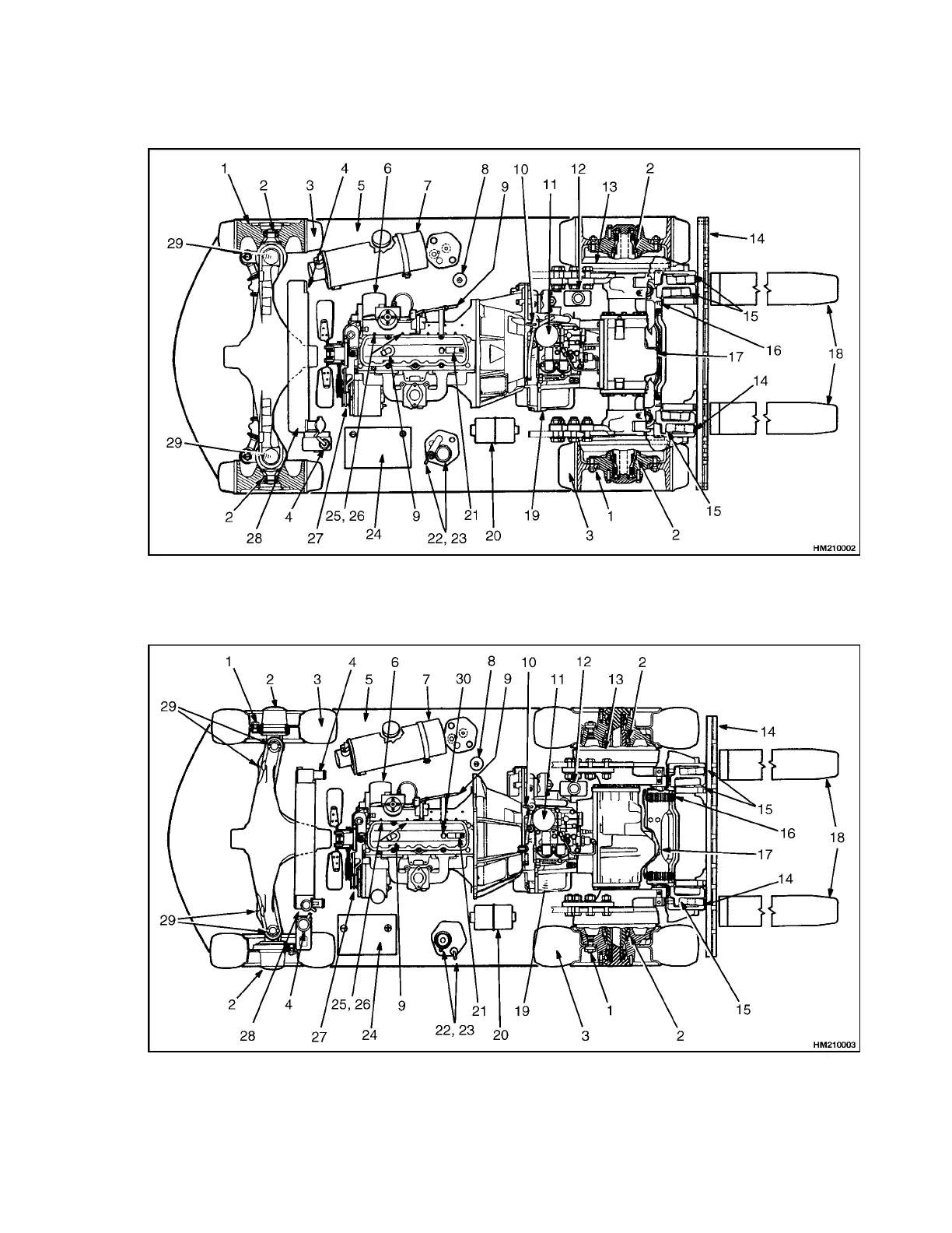 Figure 3. Maintenance and Lubrication Points, Powershift Transmission H45-65XM
