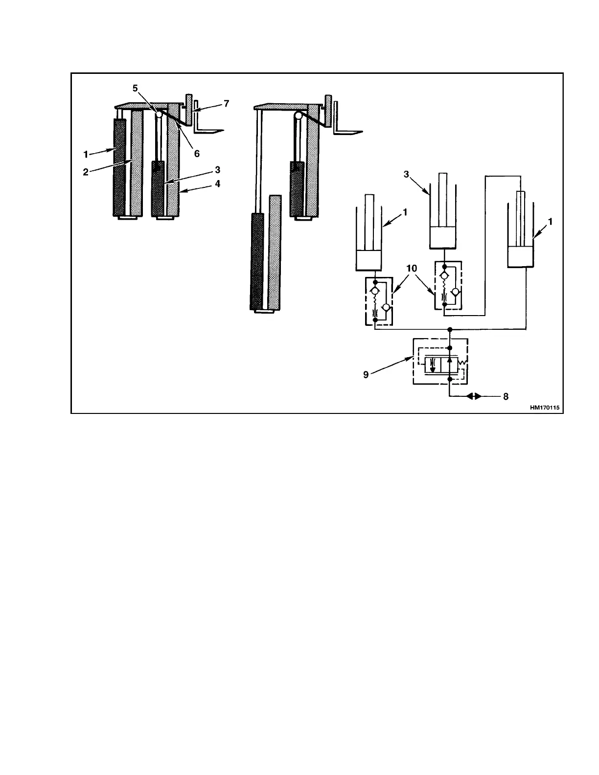 mast. The two main lift cylinders are installed at