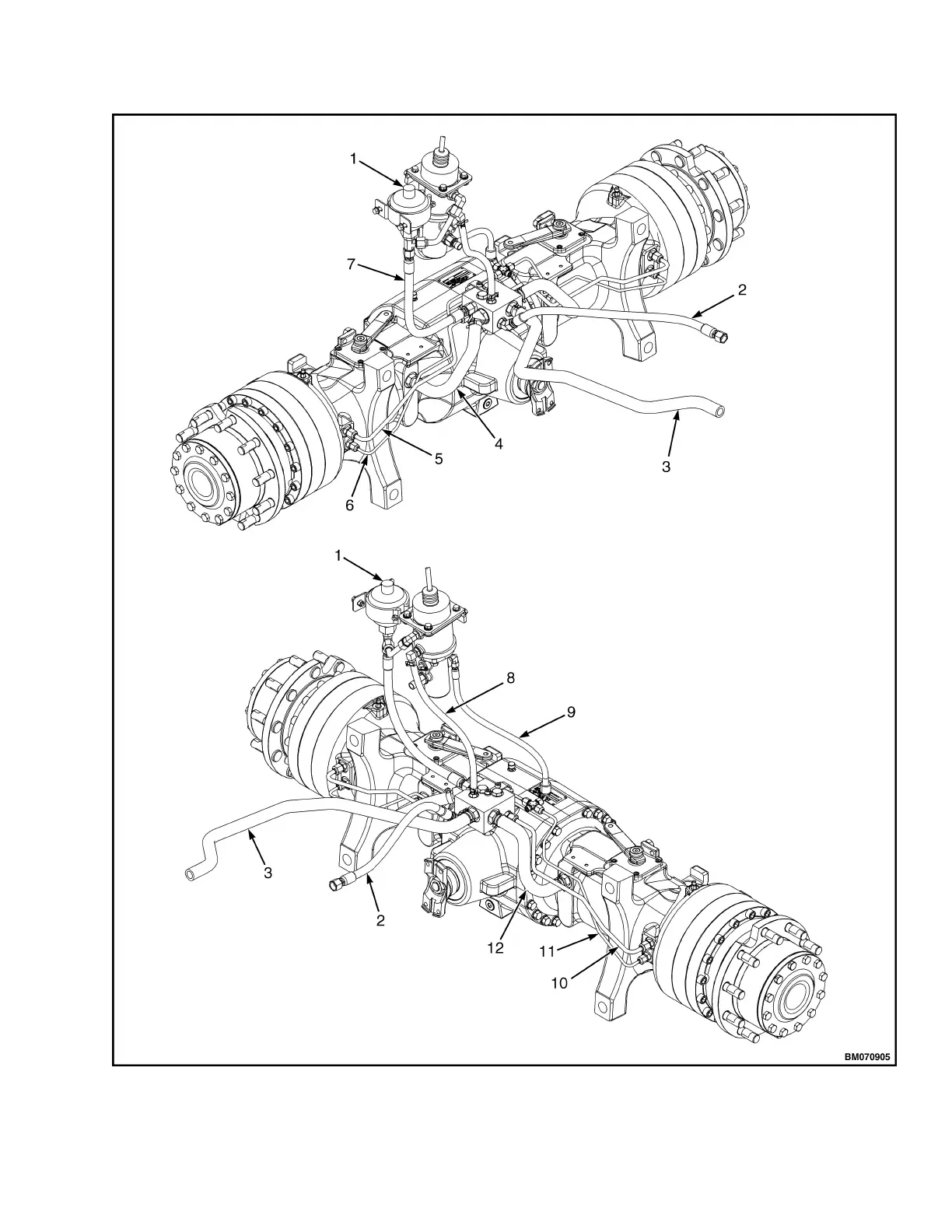 Figure 3. Drive Axle and Brake Cooling Lines and Brake Lines for Lift Truck Models H6.0FT, H7.0FT