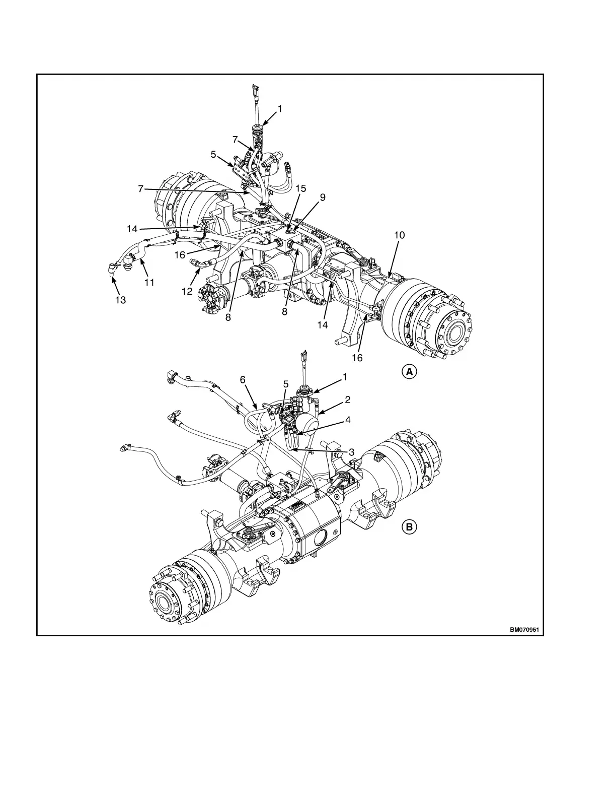 Figure 7. Drive Axle, Manifold, Cooling Hoses, and Brake Lines for Lift Truck Model H8.0FT, H8.0FT9,