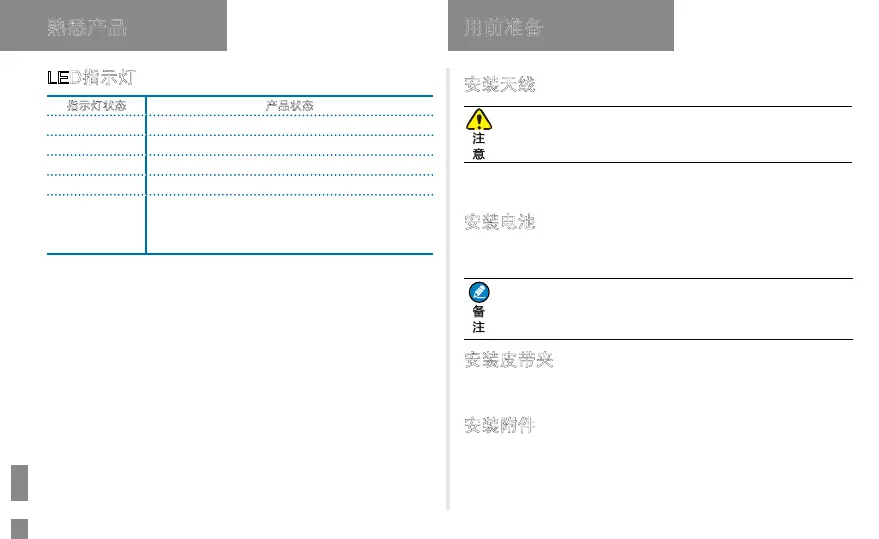 Hytera BD502i - Led指示灯; 安装天线; 安装电池; 安装皮带夹