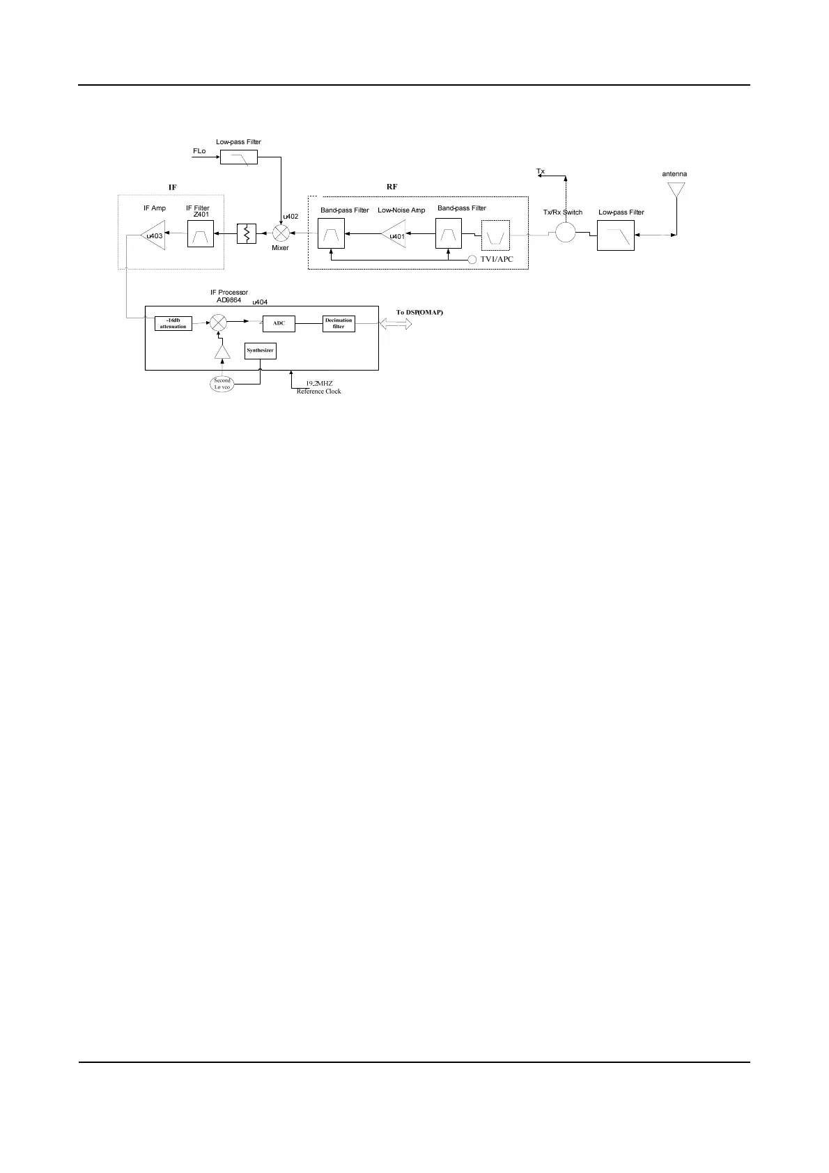 Then the amplified signal goes to the IF processor AD9864 (U401) for processing.