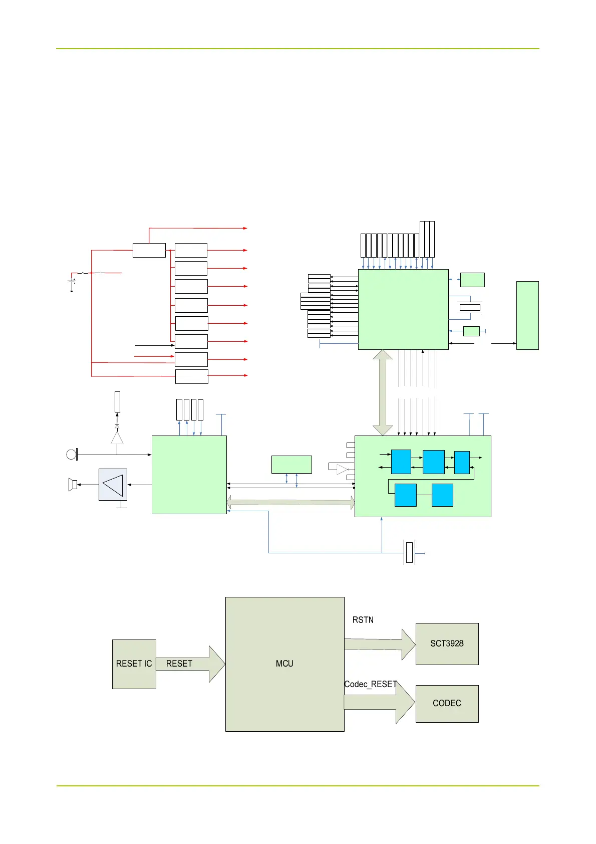 STM32F101VET6 is the main controller unit (MCU), while SCT3928 is the baseband processor chip,