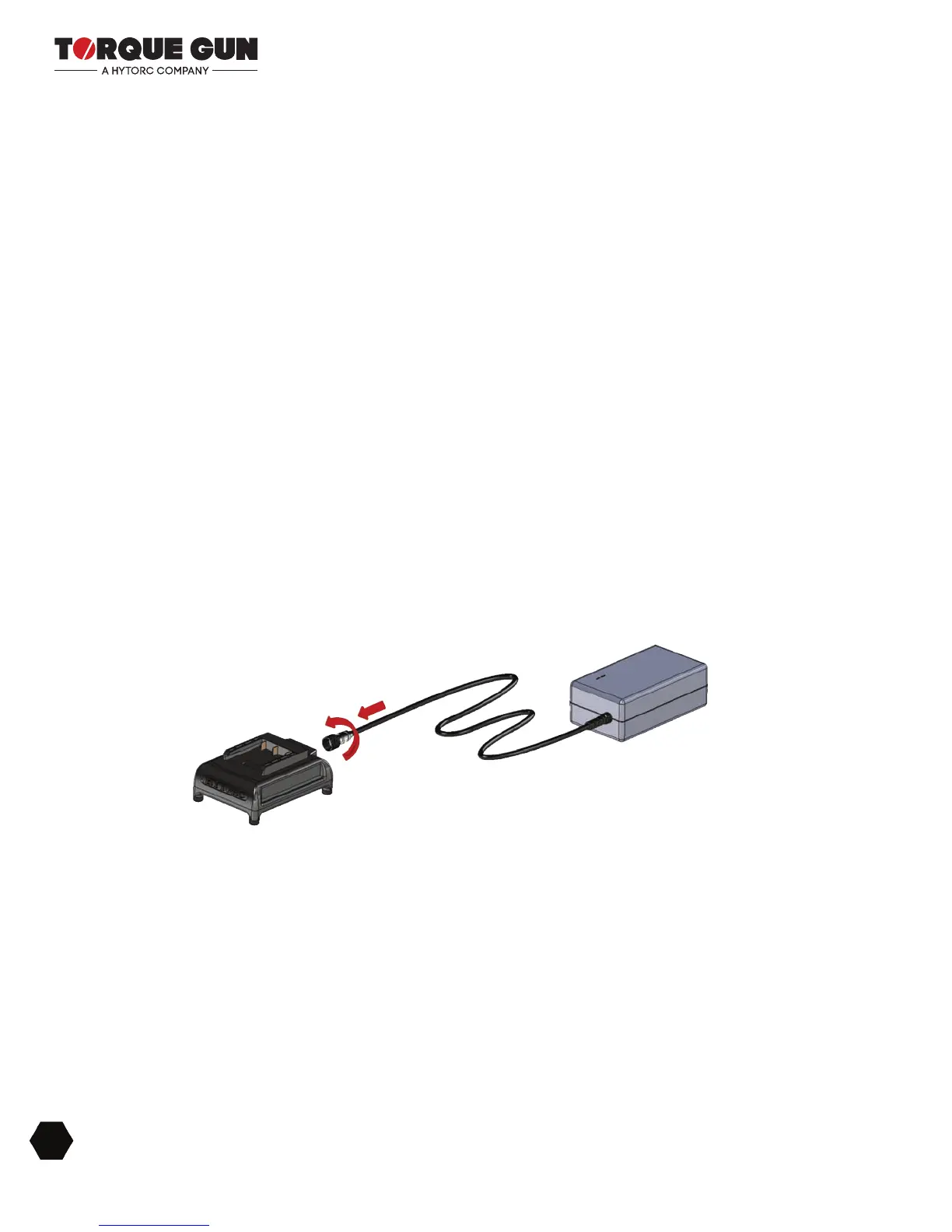 1. Plug the charger power supply into the charger cradle using the three pin plug, then tighten the