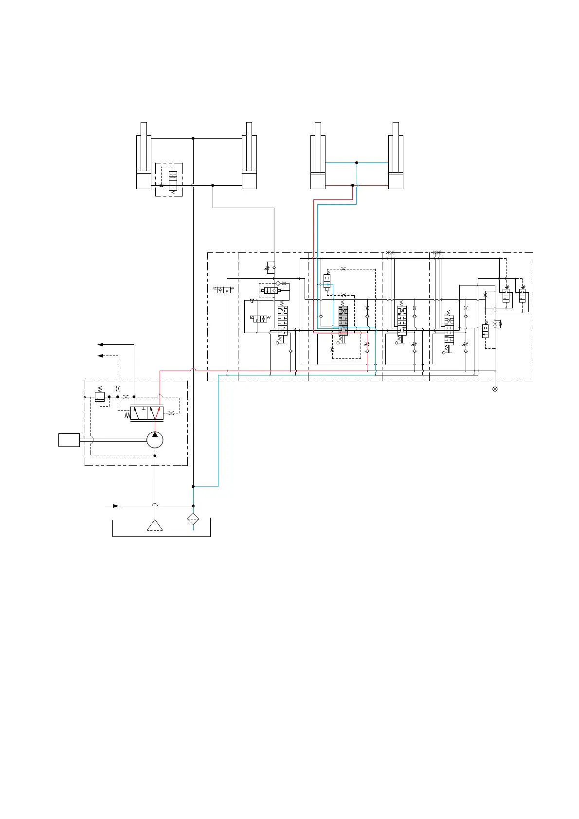 The oil from hydraulic gear pump (1) flows into main control valve (2) and then goes to the large