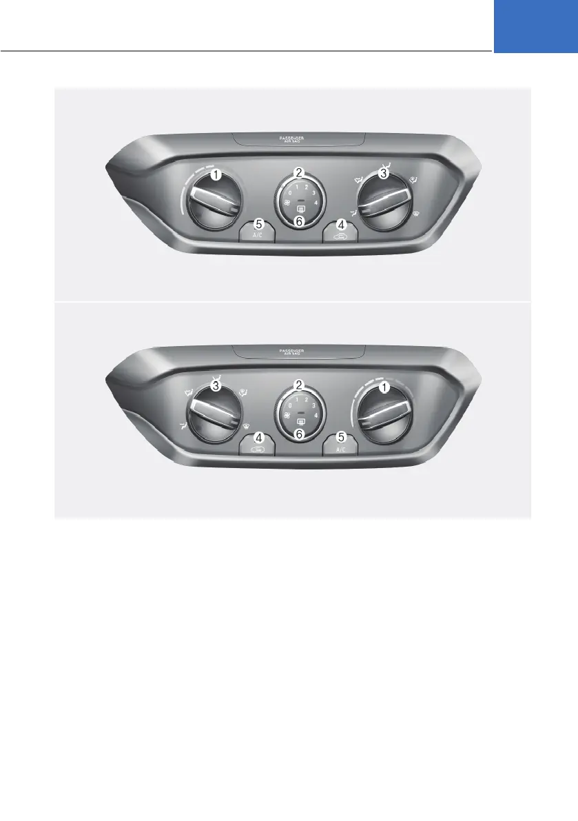 4. Air intake control button (recirculated air position or outside (fresh) air position)