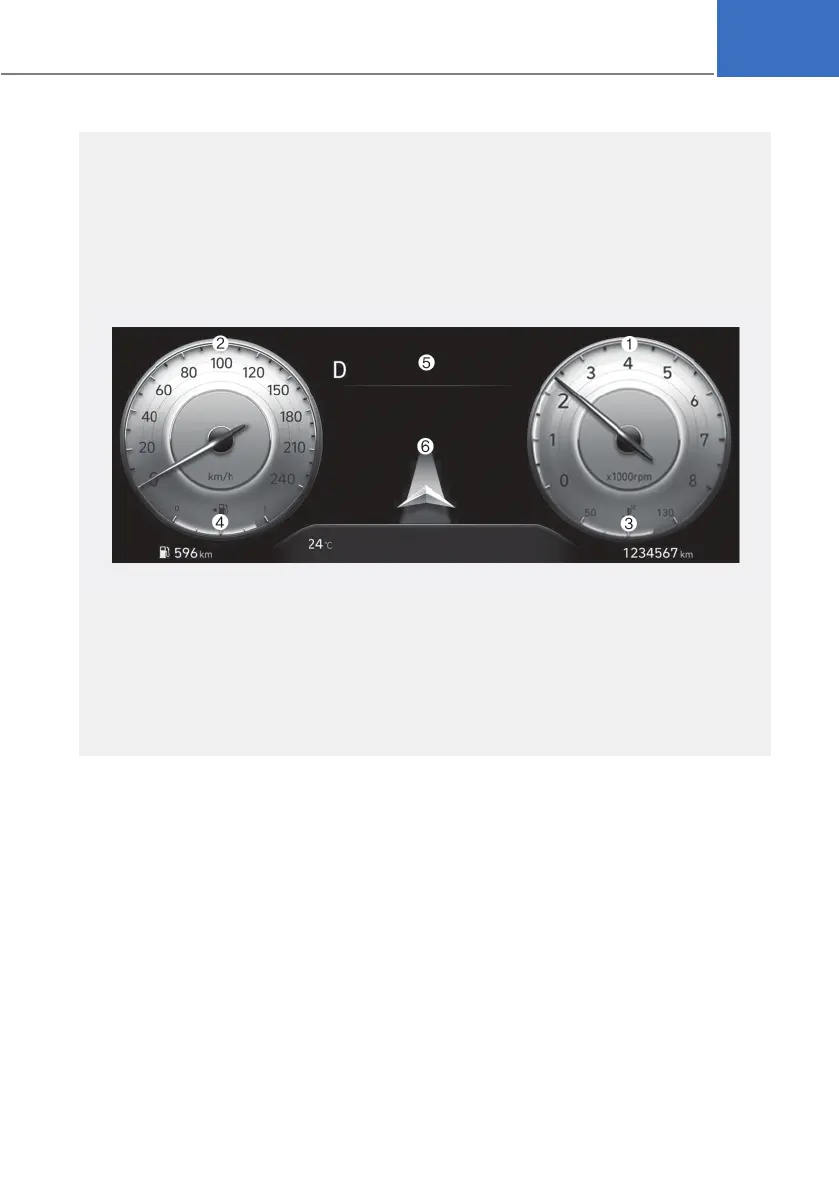 The actual cluster in the vehicle may differ from the illustration. For more details, refer to the