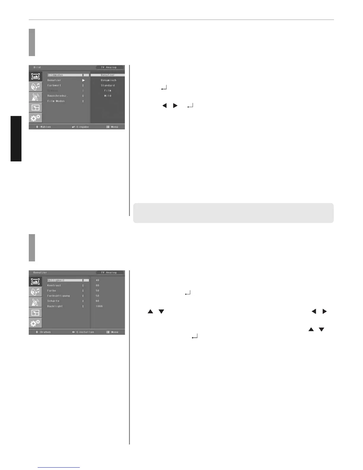 Färbung, Schärfe und Hintergrundbeleuchtung wie gewünscht einstellen.