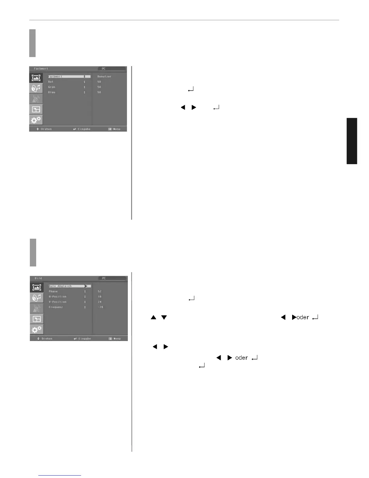Einstellen des gewünschten Bildes in PC- und HDMI-Eingangsmodi