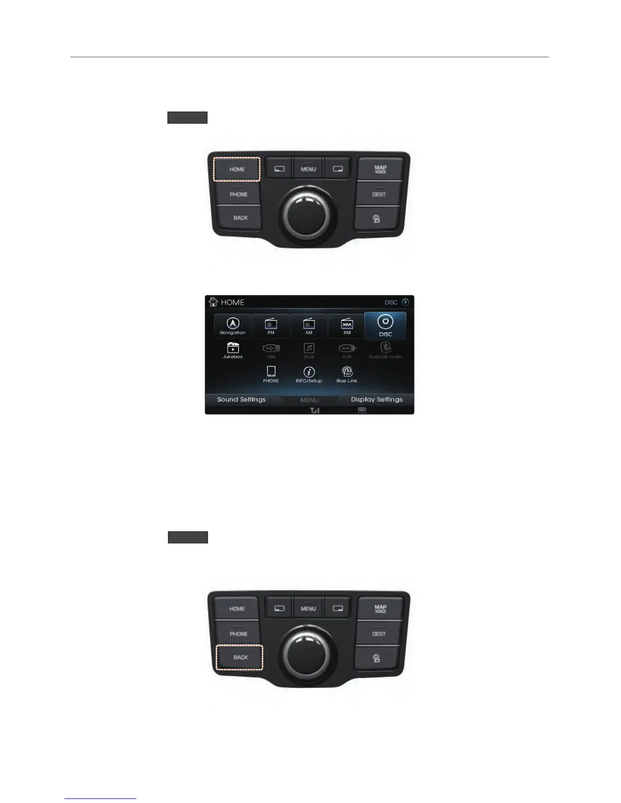 Hyundai Equus - Using the HOME Key