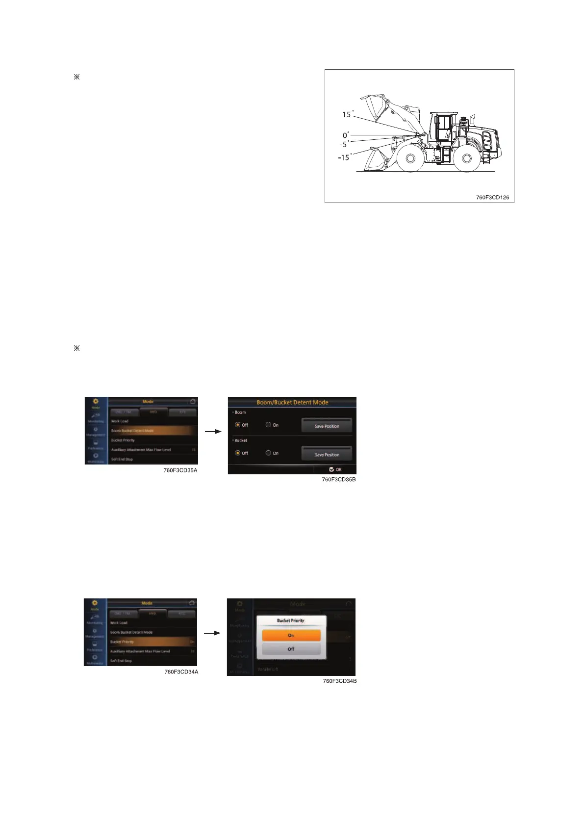 · ON : Boom or bucket detent functions are operated.