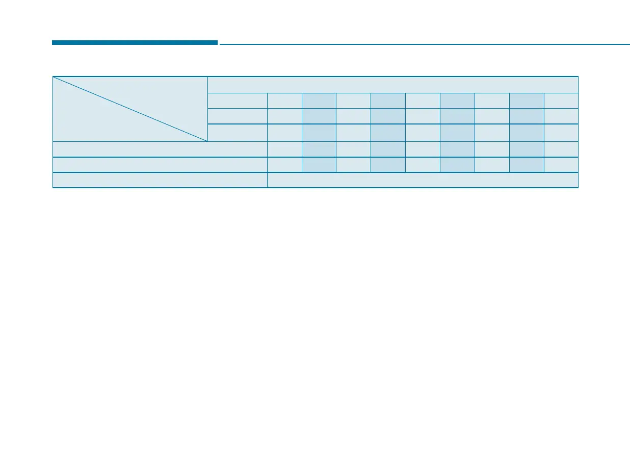 I : Inspect and if necessary adjust, top-up, clean or replace A:Add L : Lubricate