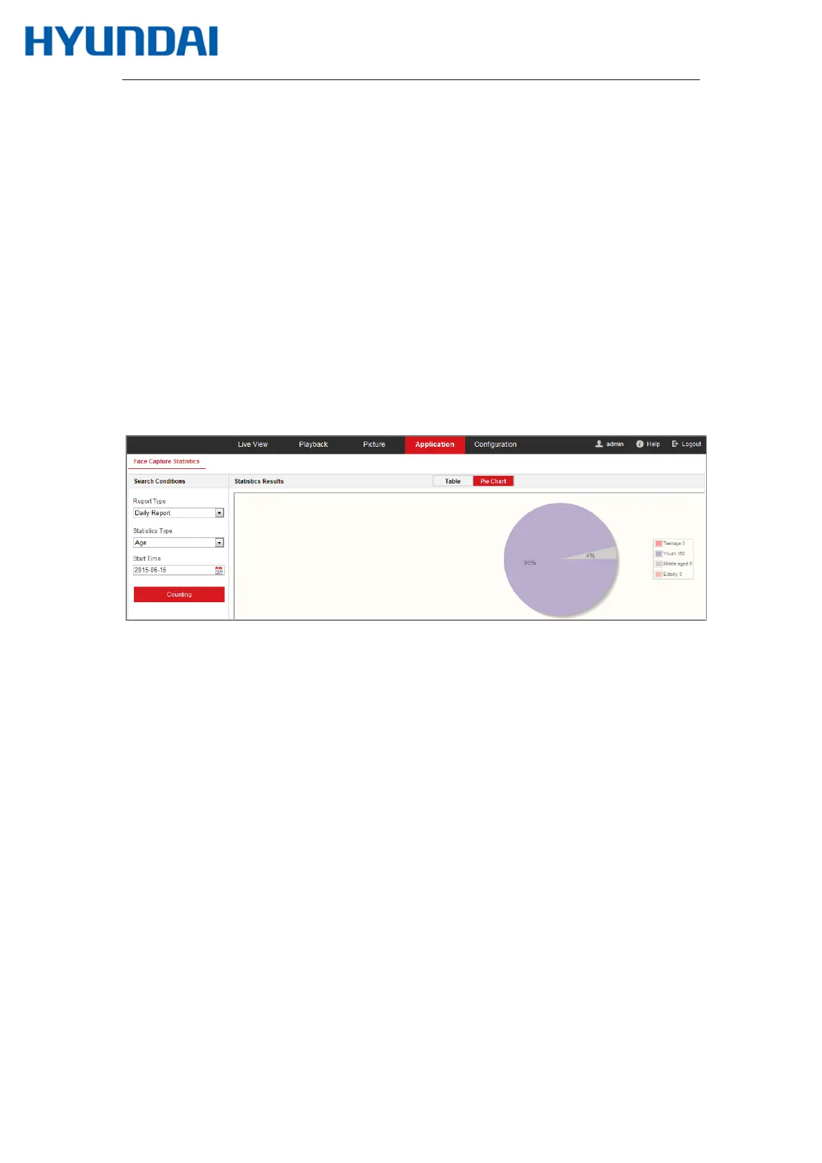 The counting result displays in the statistic result area. Click Table or Pie Chart to