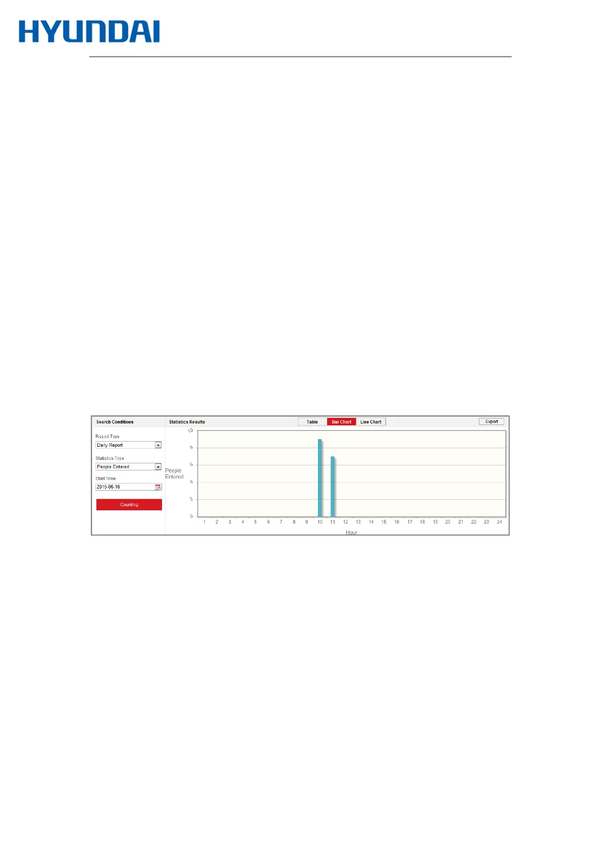 Note: If you select table to display the statistics, there is an Export button to