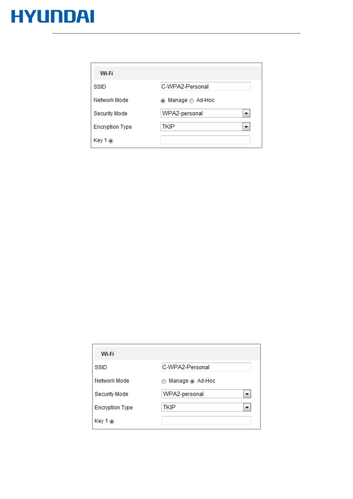 Figure 4-2 Wi-Fi Setting- Manage Mode