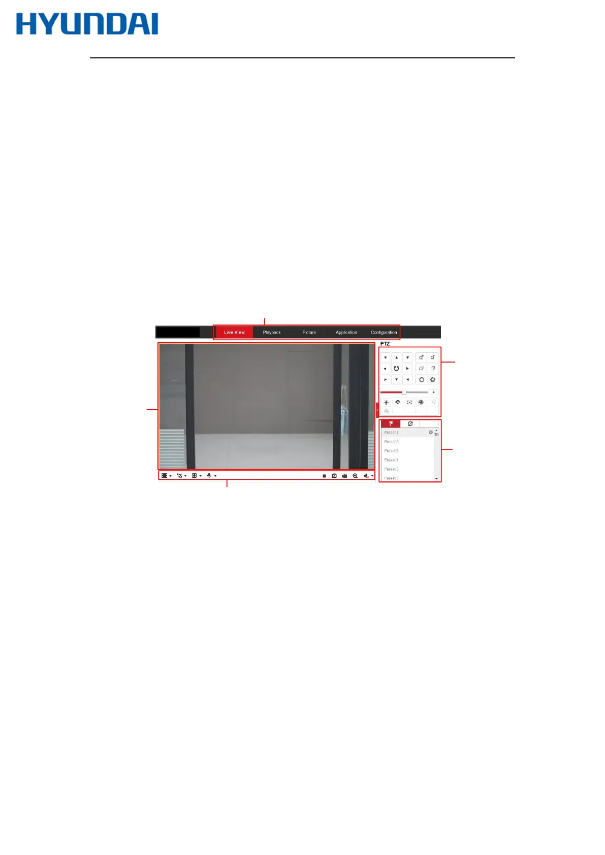The live view page allows you to view the real-time video, capture images, realize PTZ