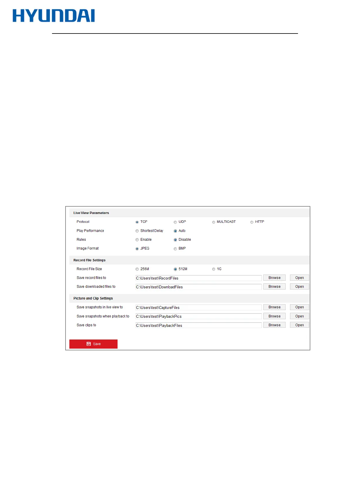 Live View Parameters: Set the protocol type and live view performance.
